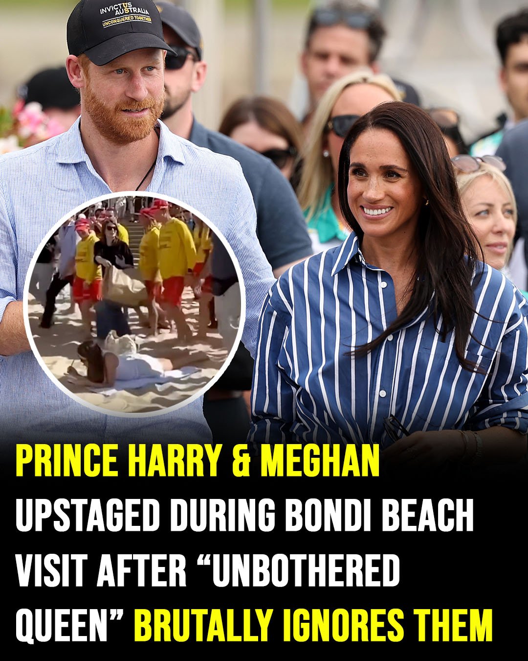 The anonymous woman, now affectionately dubbed the ‘Unbothered Queen’ by internet users, remained perfectly still on her towel as the royal procession swarmed around her. To many, she represented the quintessential Australian spirit—relaxed, unimpressed by celebrity, and fiercely protective of her right to enjoy the beach in peace. While Prince Harry was seen laughing at the absurdity of the situation in the video, the contrast between the couple’s high-profile ‘media moment’ and the woman’s total indifference has highlighted a growing divide in how the public perceives the Sussexes’ transition to a ‘private’ life.